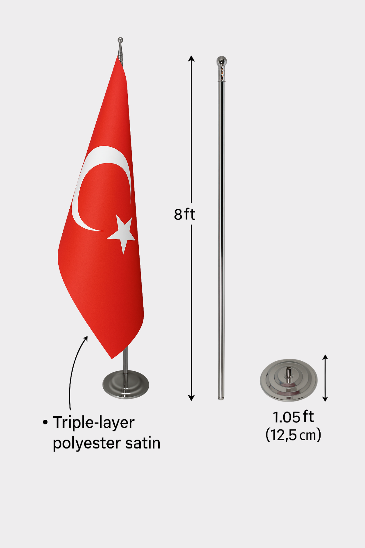 • Pole: Chrome metal pole for long-lasting use