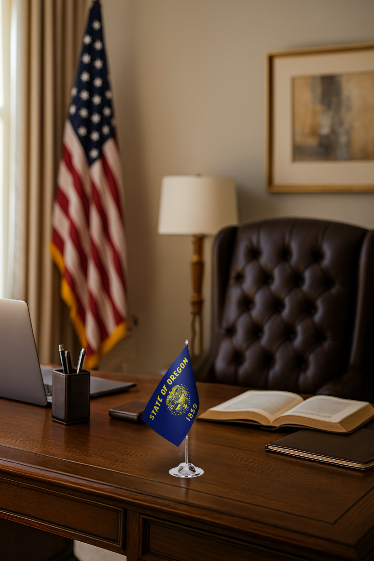 Display your state pride with this elegant Oregon State Desk Flag.